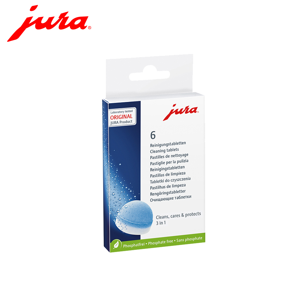 Jura研發的清洗錠,不僅加強了藥片本身的清潔效力,而且在使用它清洗過咖啡機後,在內部管路表面留下保護層,能夠使咖啡油脂及其它雜質不那麼容易殘留在機器內,延長保養時效。