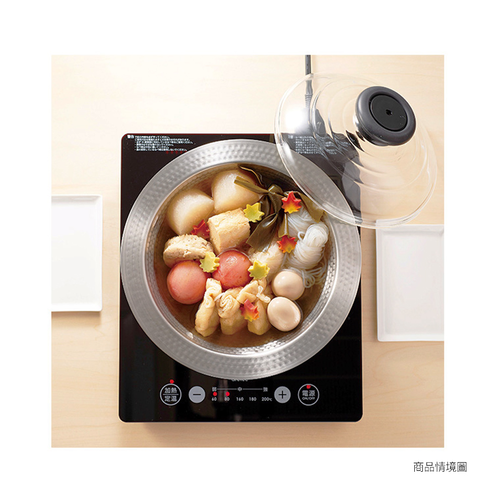 材質 | 鍋蓋-耐熱玻璃(耐熱玻璃耐熱溫度差:120°C)、鍋身-不鏽鋼(JIS SUS304)、鍋蓋頭-PP聚丙烯(PP聚丙烯耐熱溫度:140°C)與矽膠(矽膠耐熱溫度:180°) |